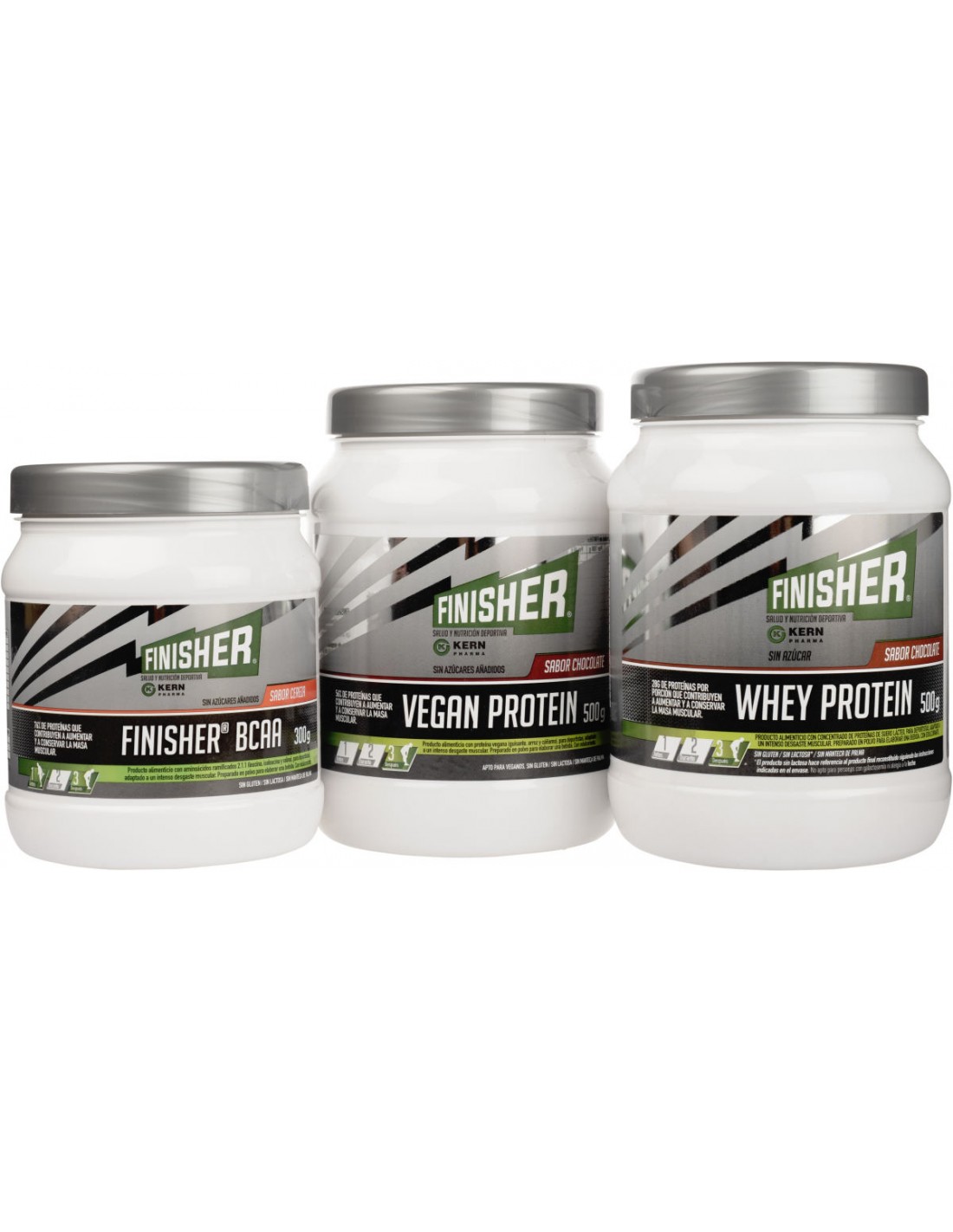 Pack Fuerza de Finisher compuesto por  FINISHER WHEY PROTEIN, FINISHER VEGAN PROTEIN  y FINISHER BCAA