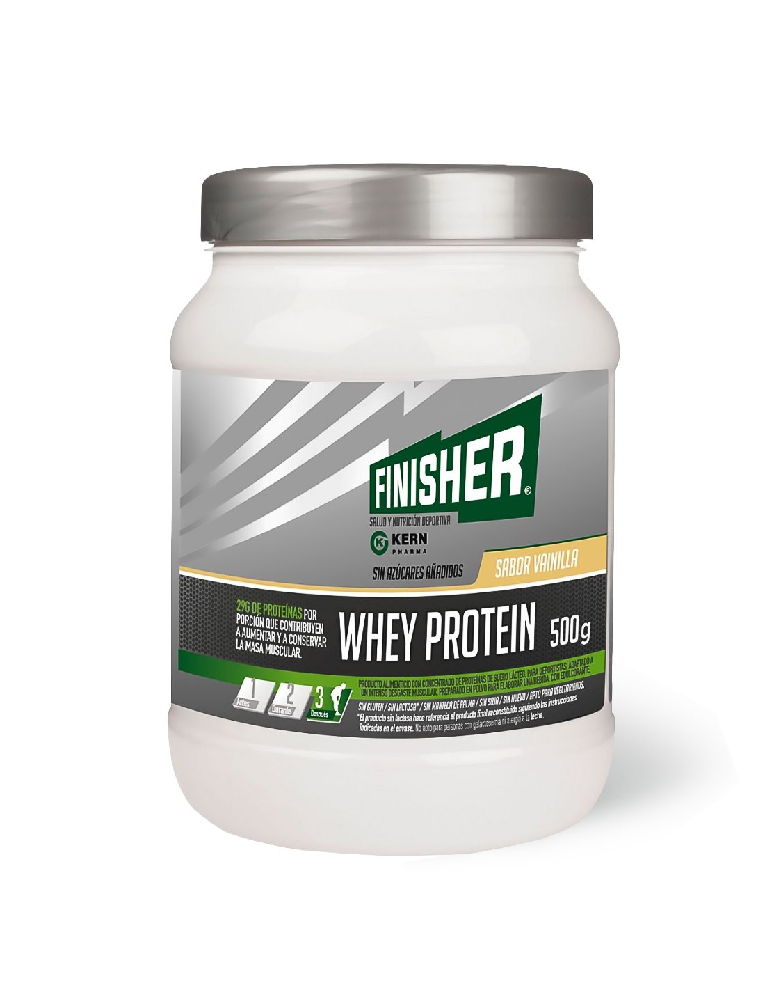 Finisher® Whey Protein es un producto alimenticio para deportistas, adaptado a un intenso desgaste muscular. Con edulcorante. Preparado en polvo para elaborar una bebida. Las proteínas contribuyen a aumentar y a conservar la masa muscular.