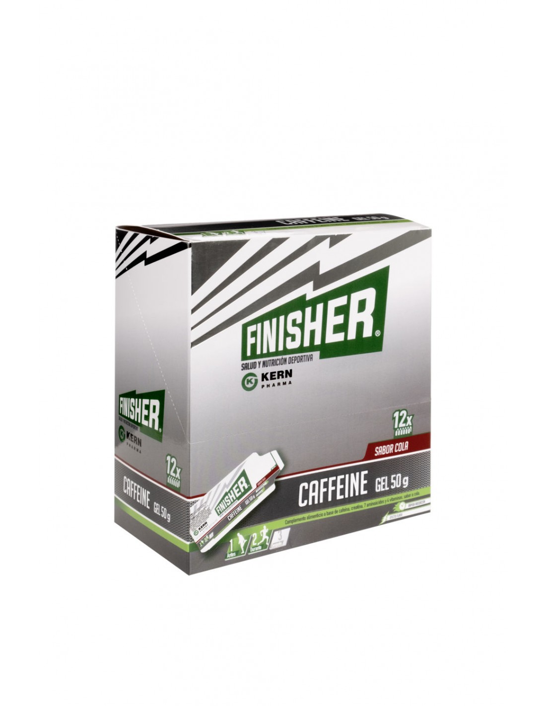 Finisher® Caffeine es un gel con cafeína que debe tomarse antes o durante el ejercicio físico. Contiene 22 g de hidratos de carbono de rápido absorción; vitaminas B6 y B12 que contribuyen al metabolismo energético normal y ayudan a disminuir el cansancio y la fatiga; y aminoácidos ramificados (BCAA) que contribuyen a la integración de la dieta.