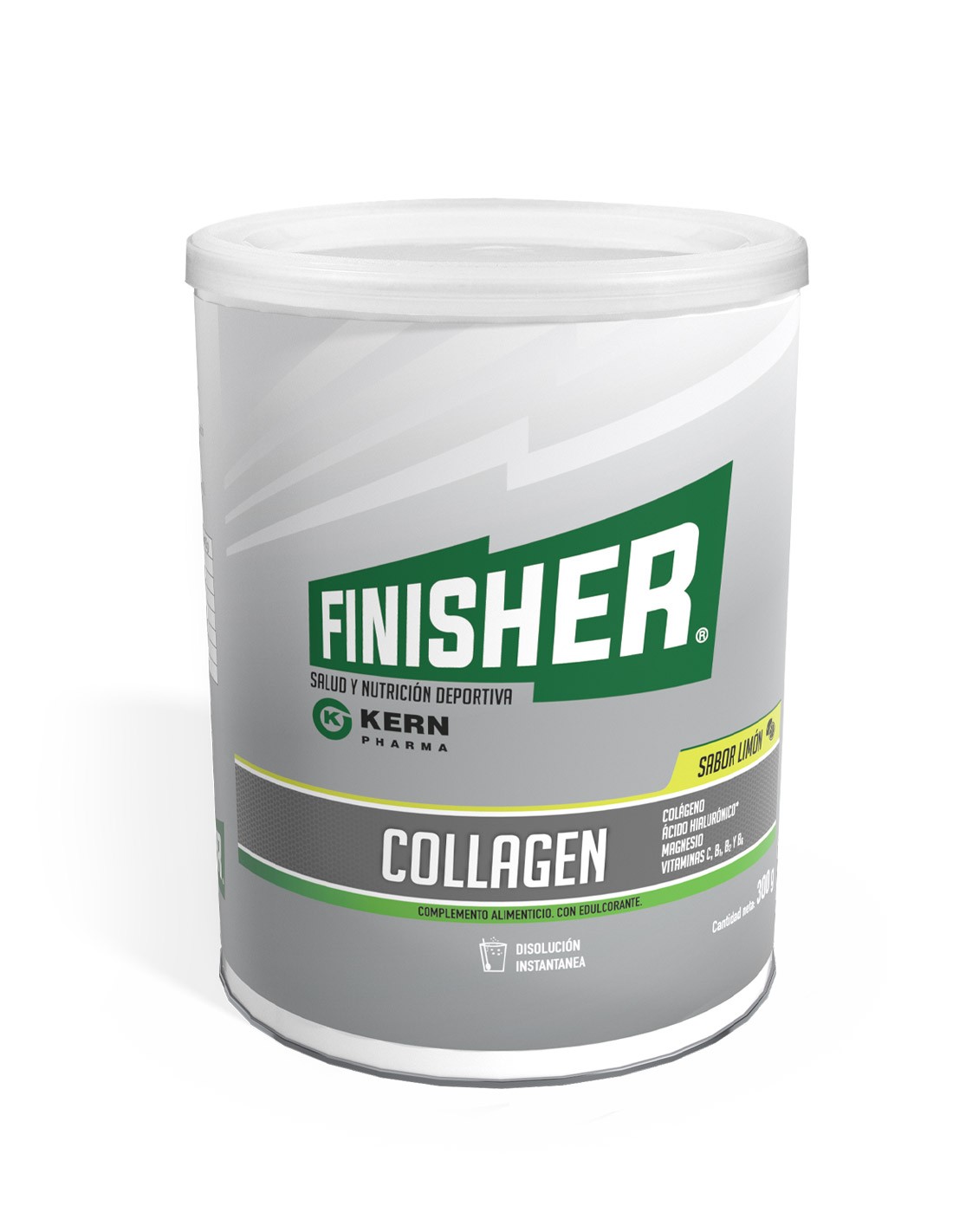 Finisher® Collagen es un complemento alimenticio a base de colágeno hidrolizado, ácido hialurónico, magnesio y vitaminas C, B1, B2 y B6. Contiene proteínas que contribuyen a aumentar y conservar la masa muscular y al mantenimiento de los huesos en condiciones normales. La vitamina C contribuye a la formación normal del colágeno para el funcionamiento normal de los huesos y cartílagos.